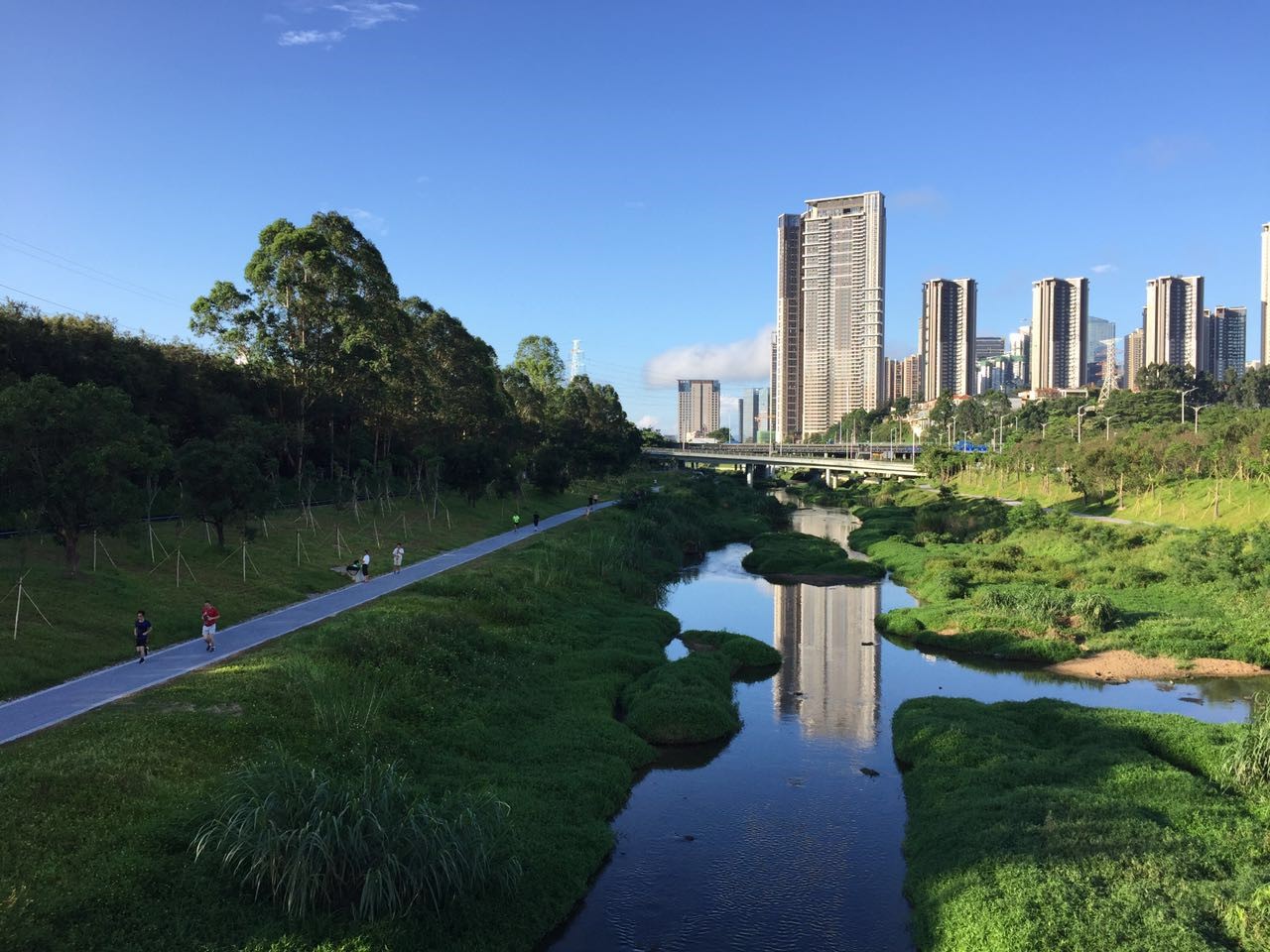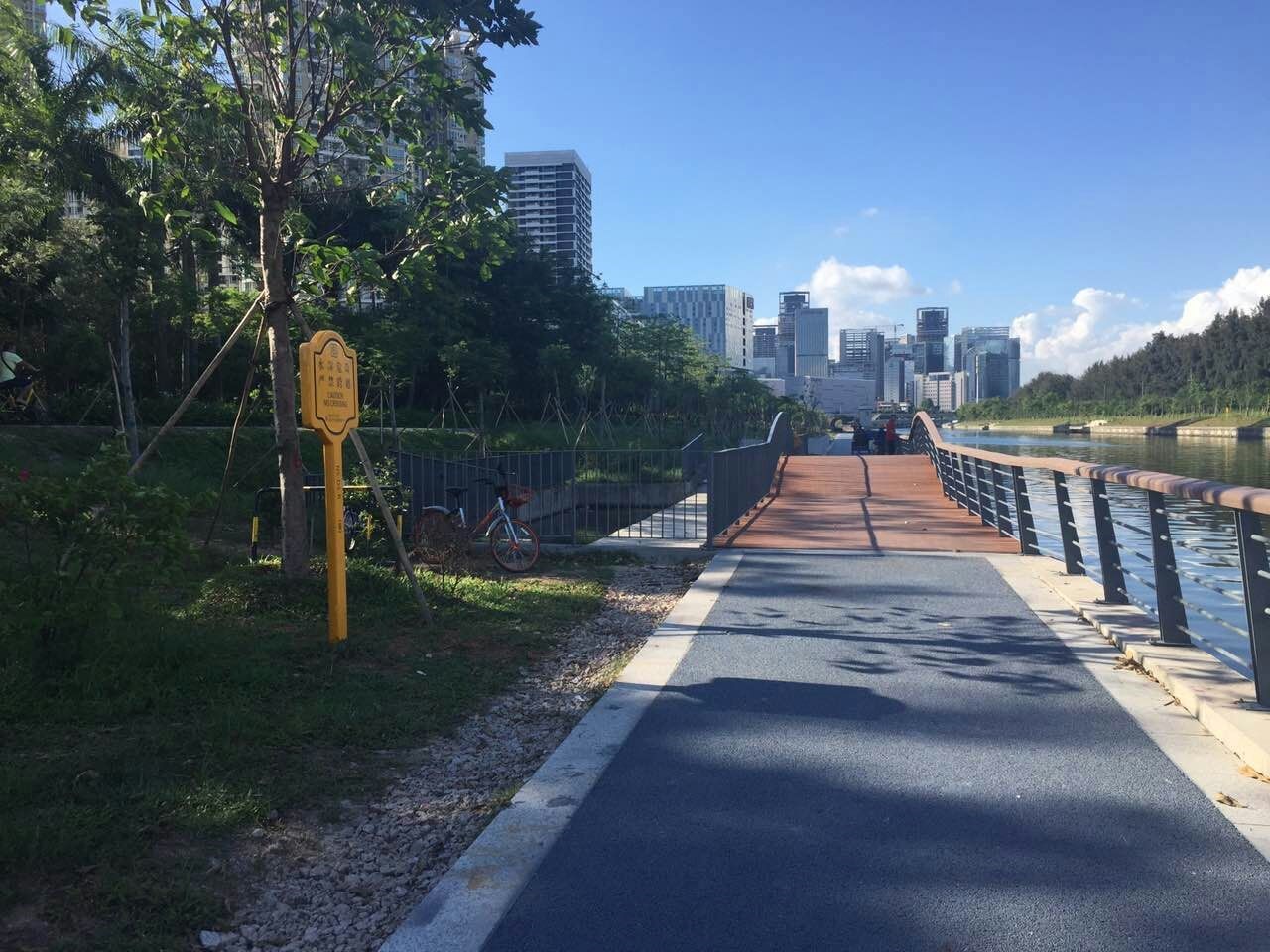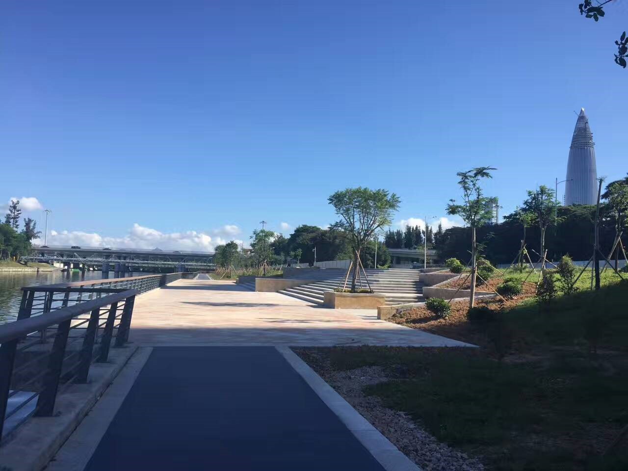 4.项目简介:大沙河发源于羊台山,位于深圳市南山区,流域内包括西沥、长岭披、钳劲三座水库在内,控制流域面积92.99平方公里,河道起于长岭披水库溢洪道出口,至滨河立交注入深圳湾,干流河道总长13.7公里。本次治理范围为大学城中科院桥至河道出海口河道两侧,整治总长度11.3公里。本工程主要以园建及绿化为主,内容包括:园路步道工程(包括排水管道、生态排水沟、沉沙井等)、路面改造工程、园林景观工程(包括景观节点、过河汀步、挑台、停驻地、停车场、钢梯、廊架、标志牌、栏杆等)及园林绿化工程(包括种植乔木、灌木、地被、草皮等)。