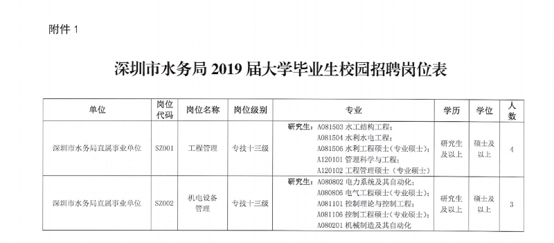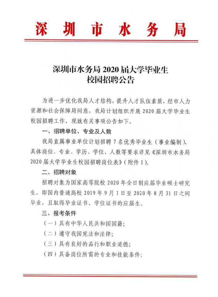 | 名称: | 深圳市水务局2020届大学毕业生校园招聘公告 | ||