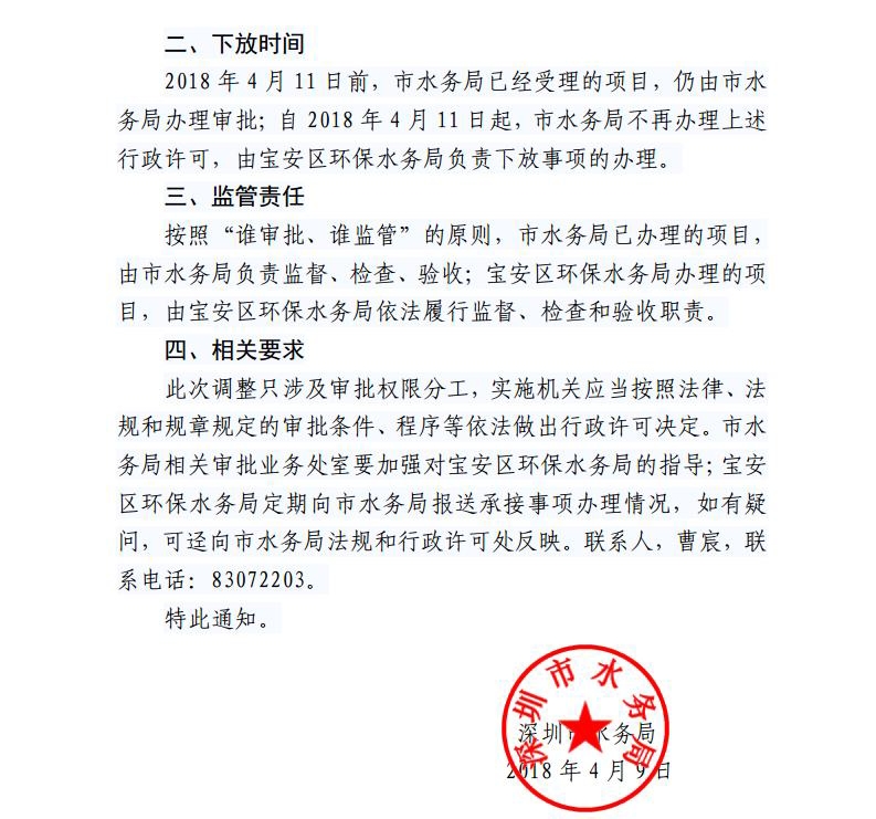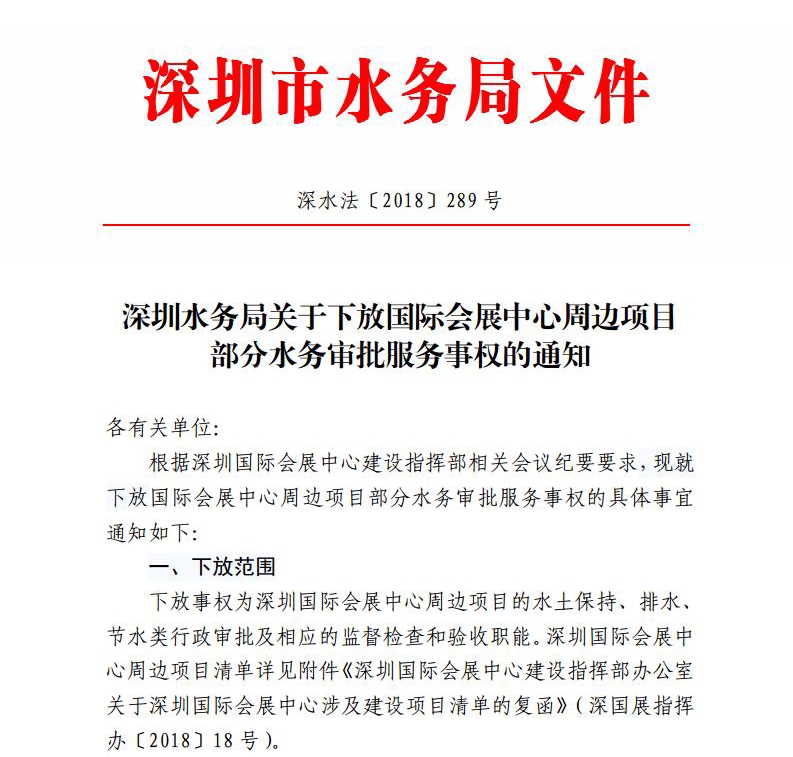 深圳水务局关于下放国际会展中心周边项目部分水务审批服务事权的通知