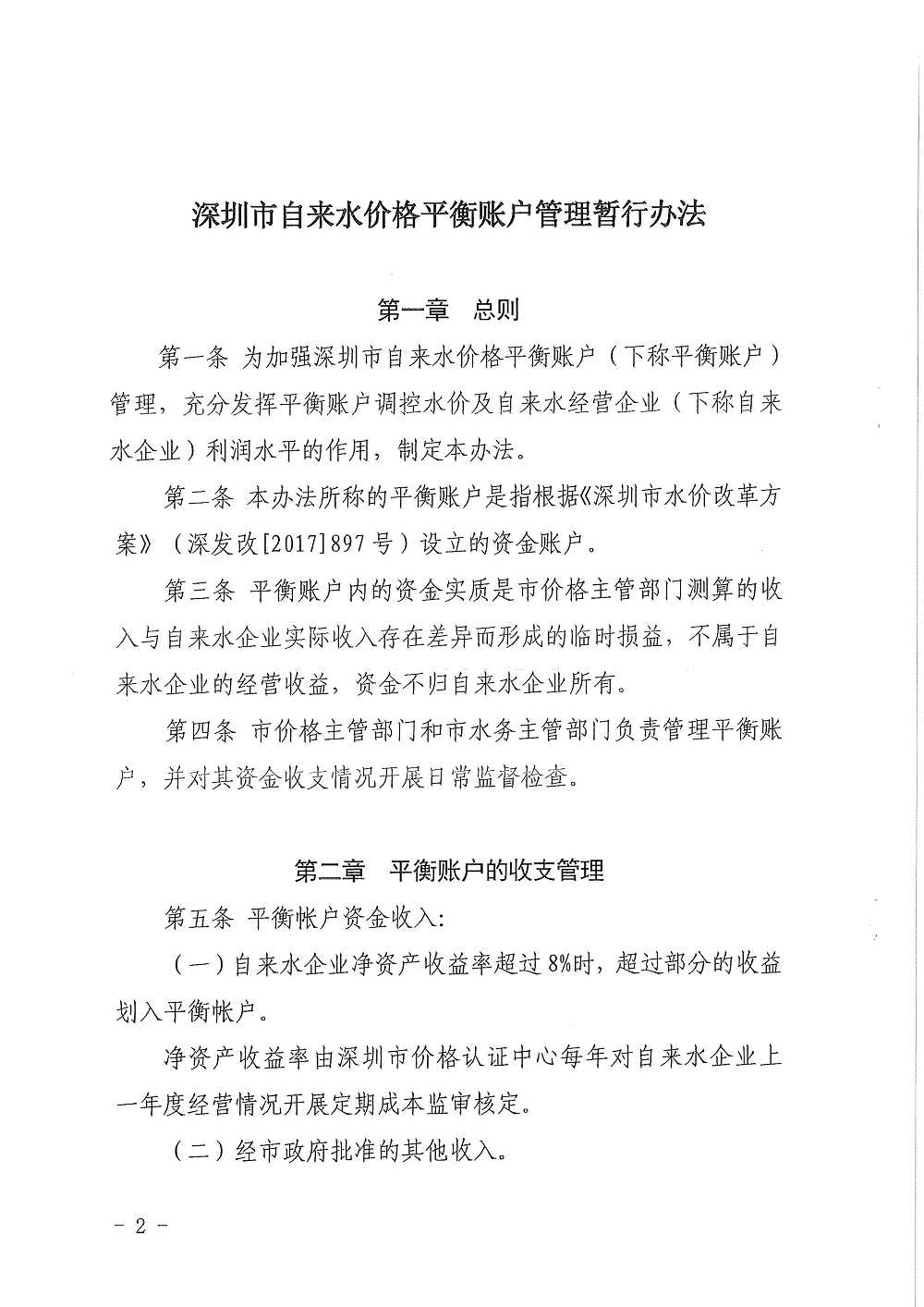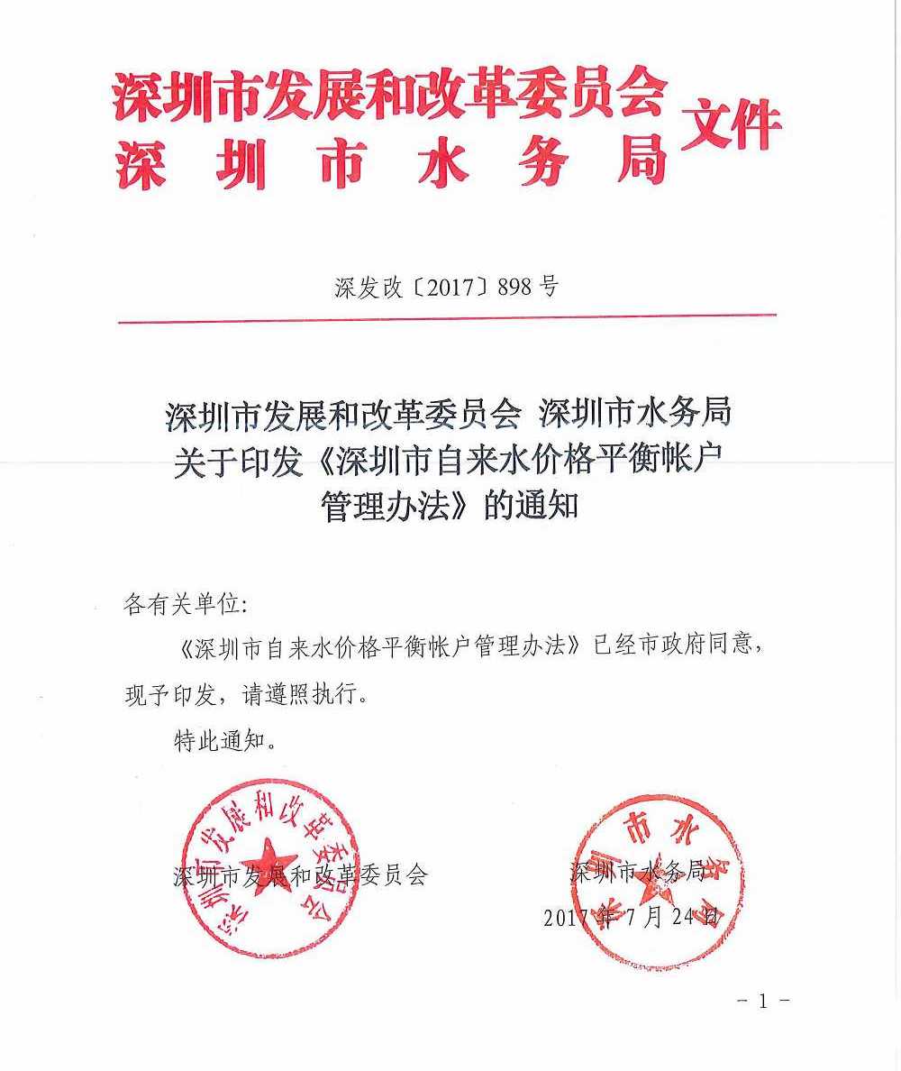 深圳市发展和改革委员会深圳市水务局关于印发《深圳市自来水价格平衡账户管理办法》的通知