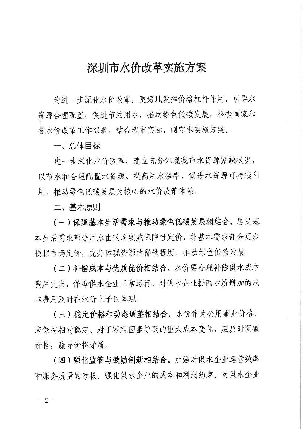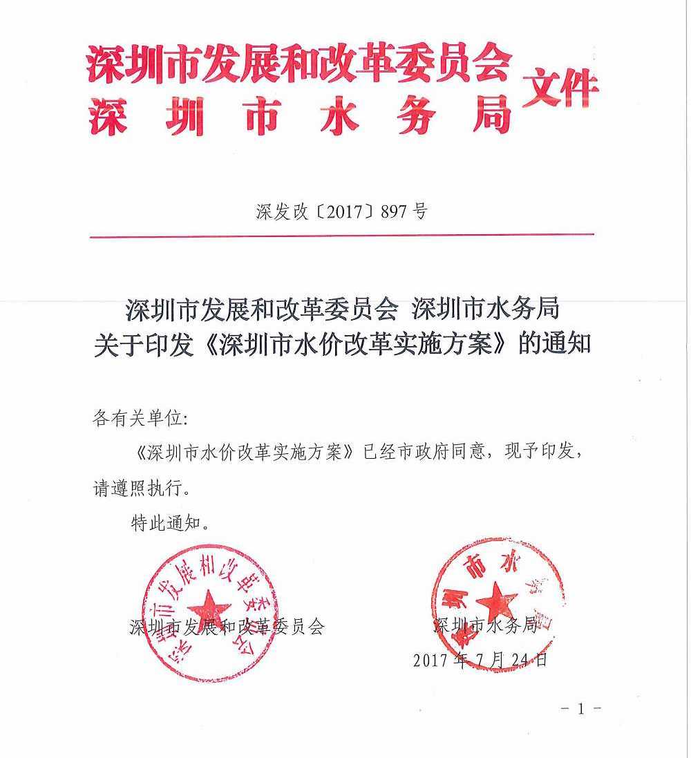 深圳市发展和改革委员会深圳市水务局关于印发《深圳市水价改革实施方案》的通知