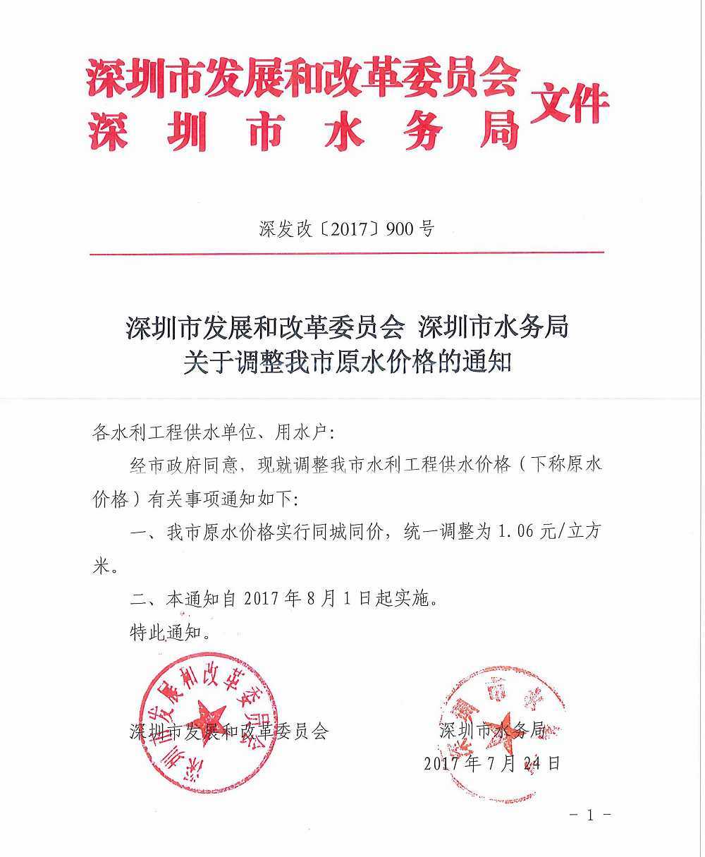 深圳市发展和改革委员会深圳市水务局关于调整我市原水价格的通知