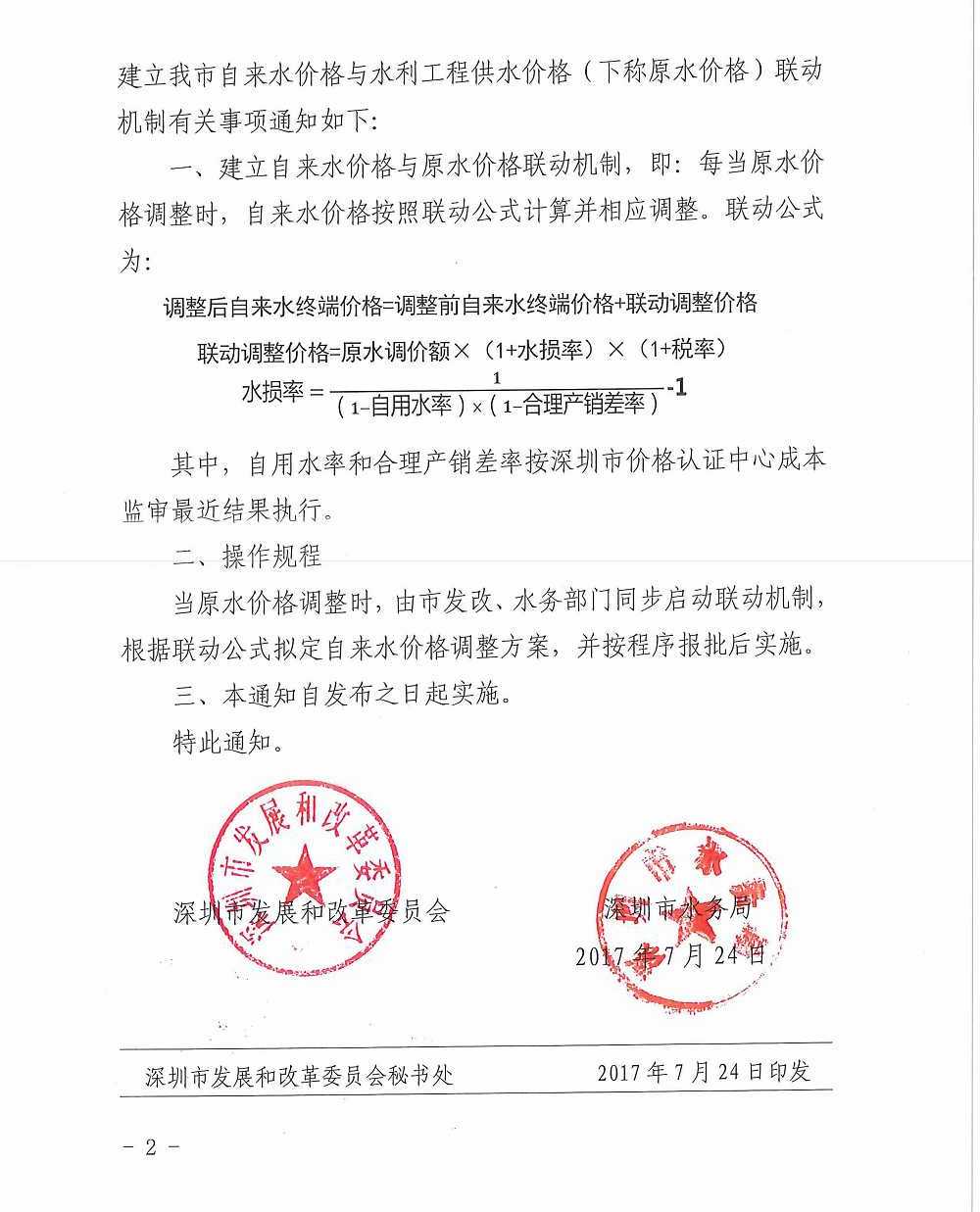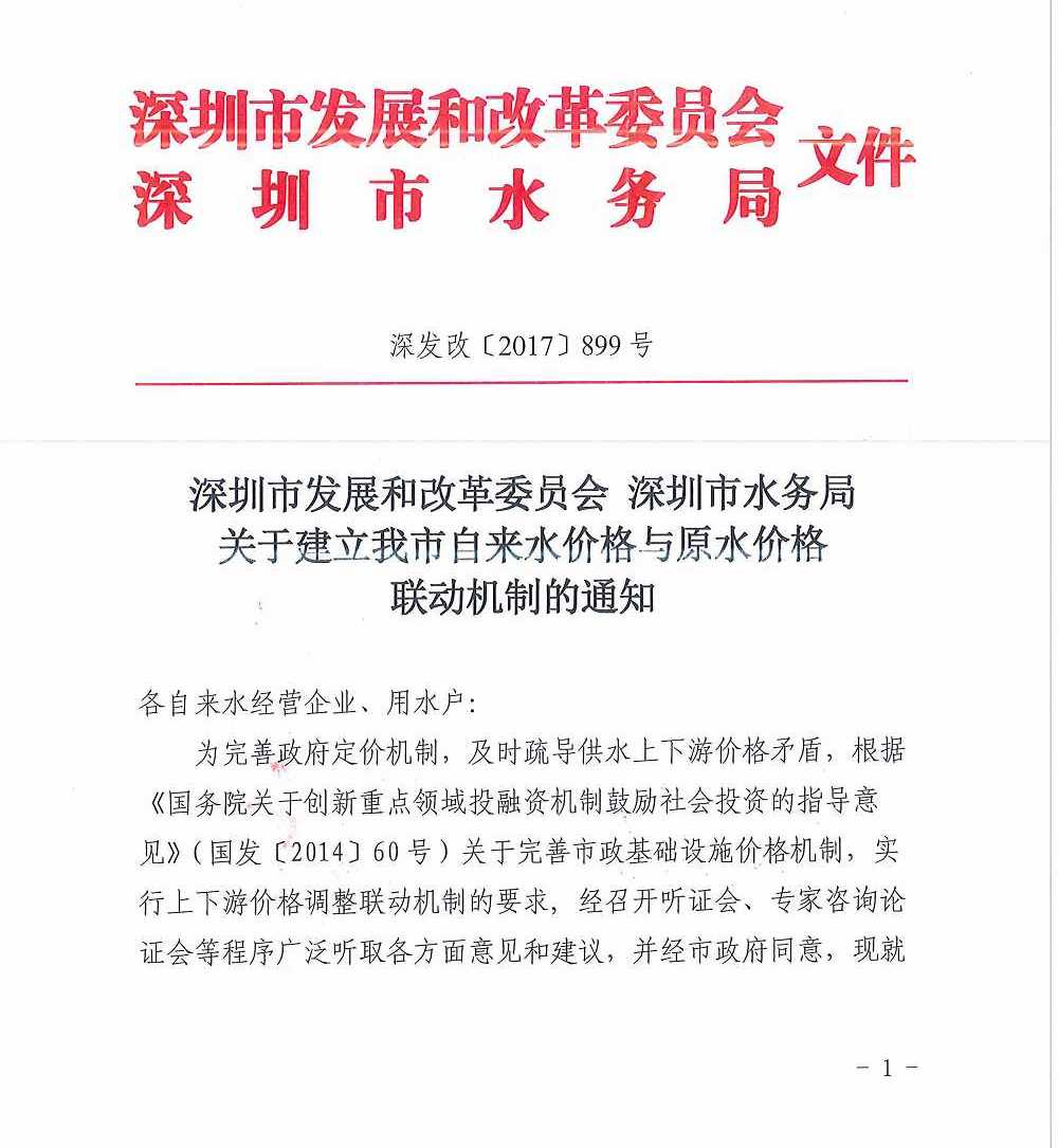 深圳市发展和改革委员会深圳市水务局关于建立我市自来水价格与原水价格联动机制的通知