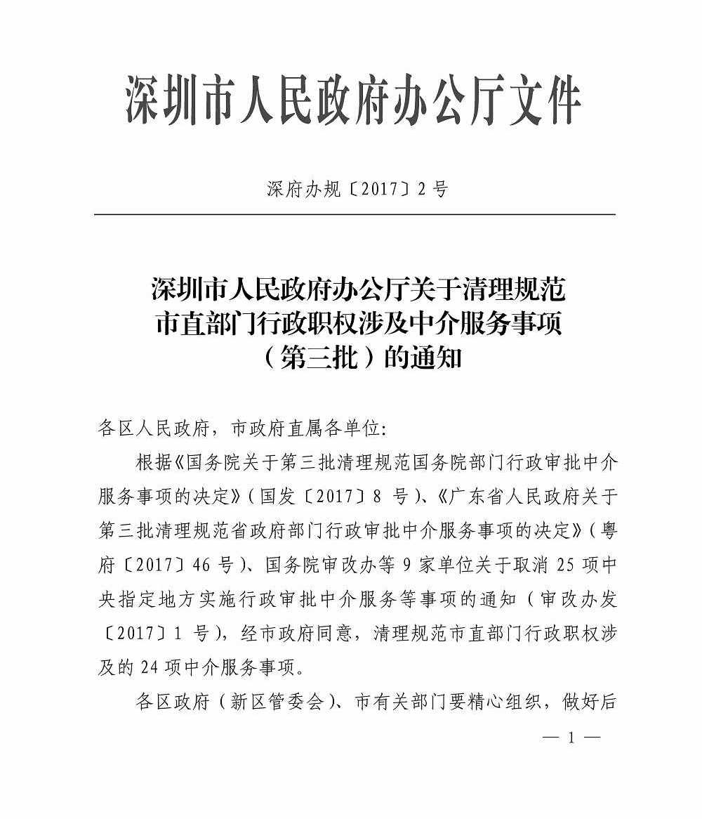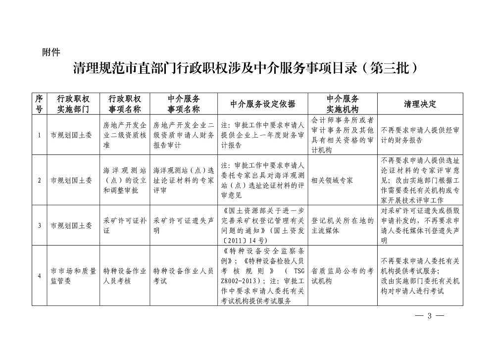 深圳市人民政府办公厅关于清理规范市直部门行政职权涉及中介服务事项(第三批)的通知