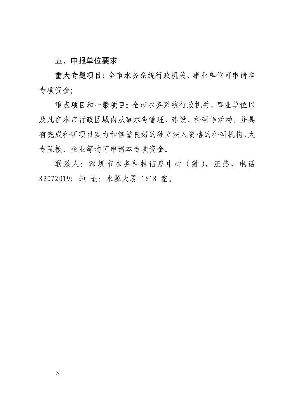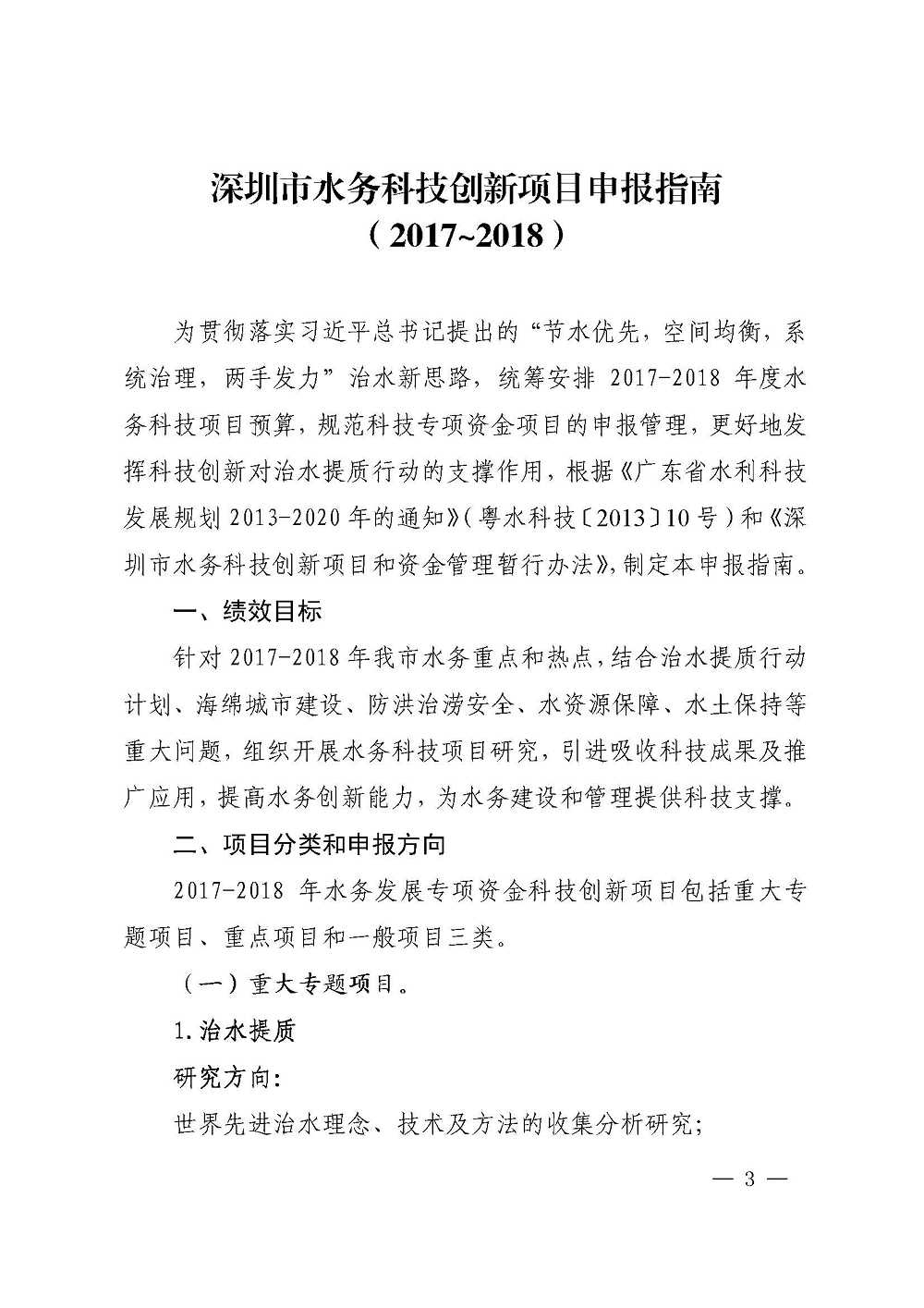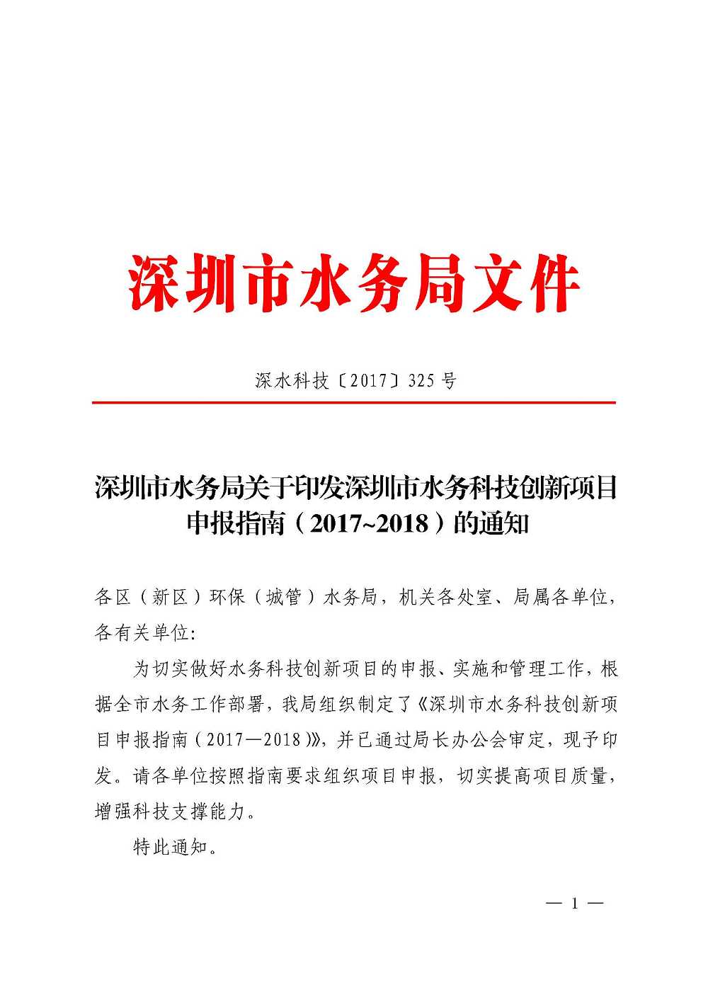 深圳市水务局关于印发深圳市水务科技创新项目申报指南(2017~2018)的通知