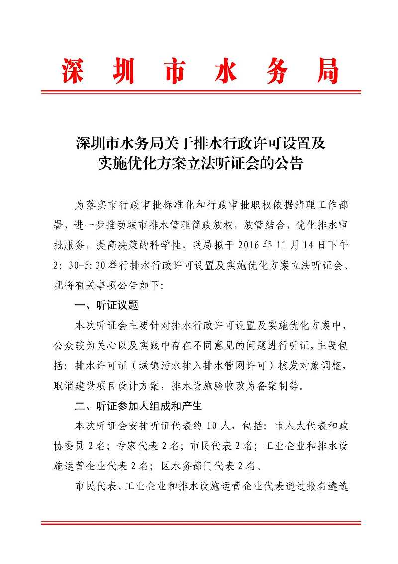 | 名称: | 深圳市水务局关于排水行政许可设置及实施优化方案立法听证会的公告 | ||