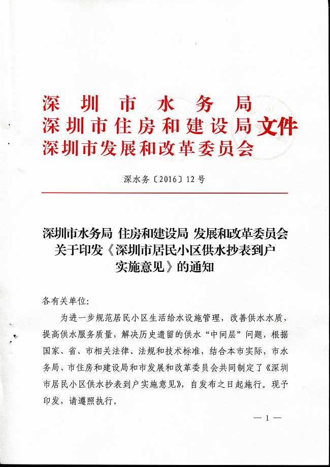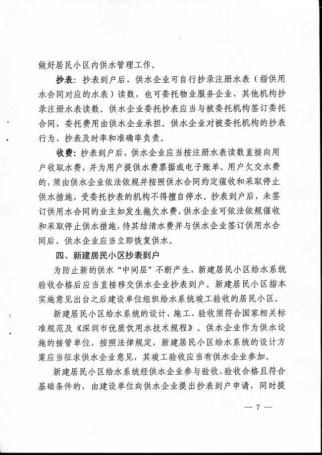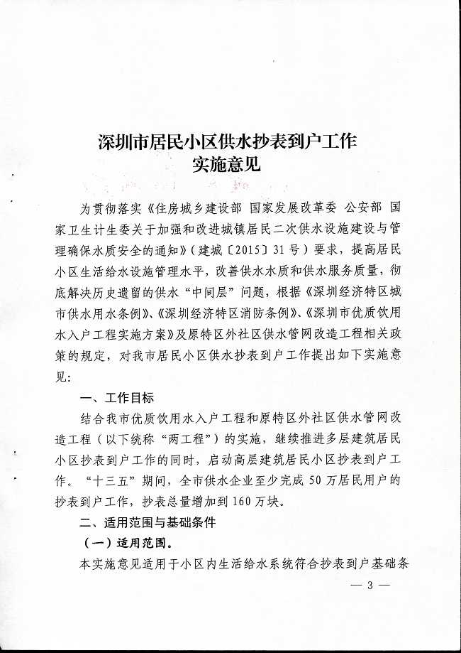 关于印发《深圳市居民小区供水抄表到户实施意见》的通知