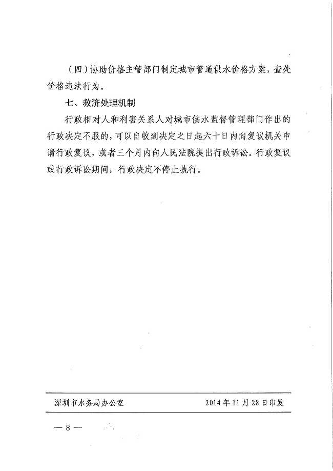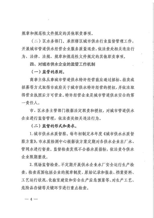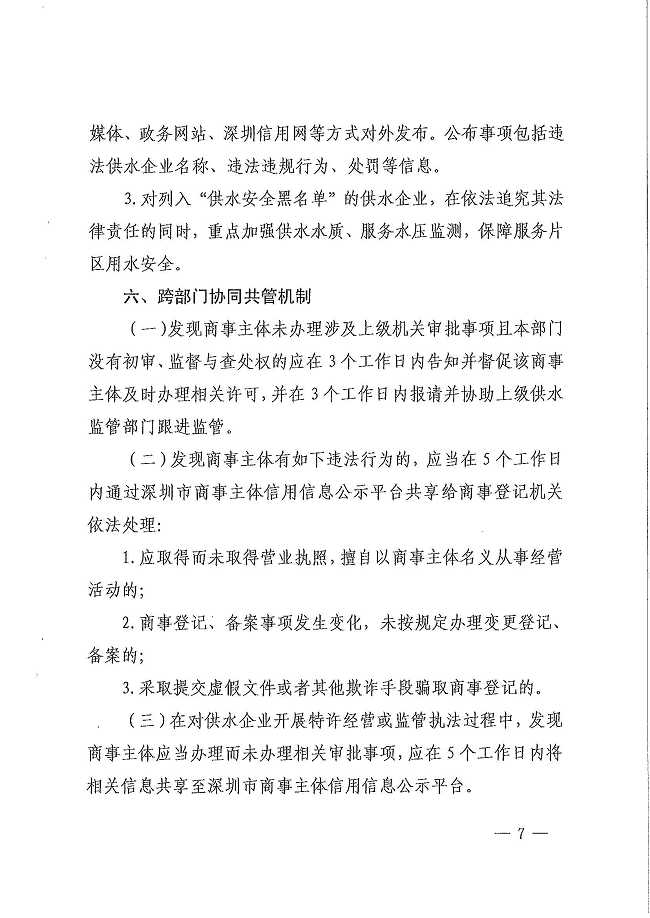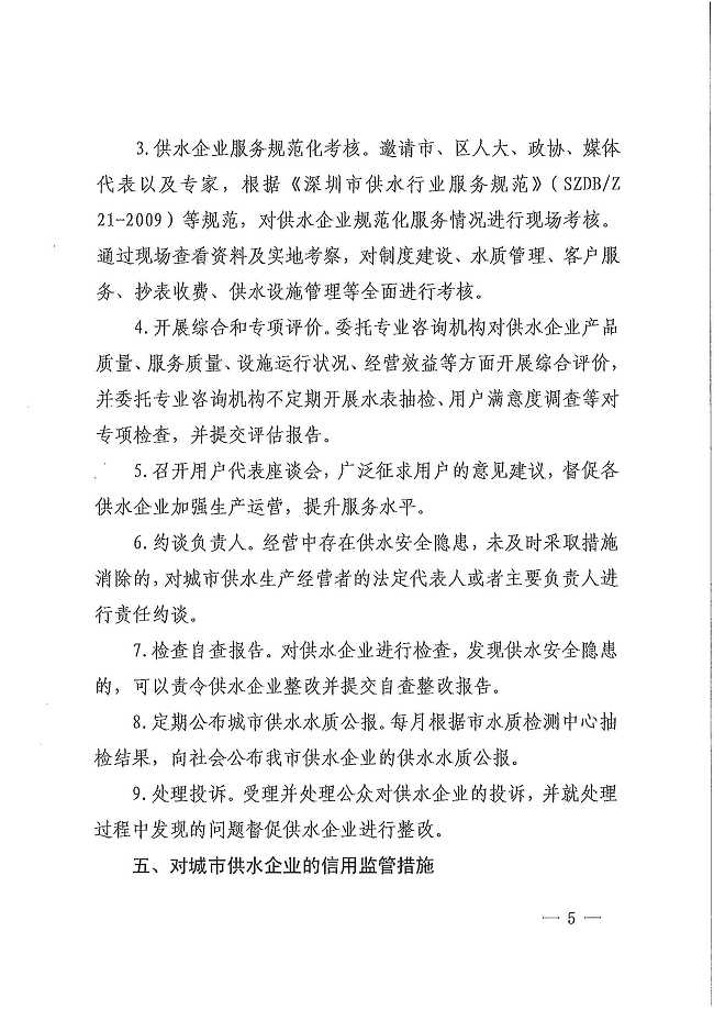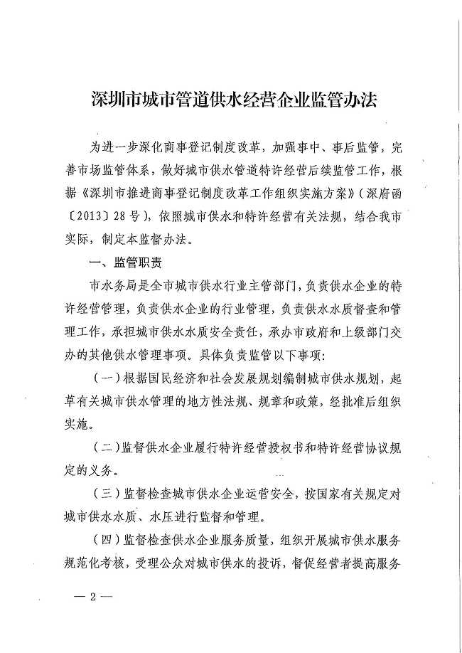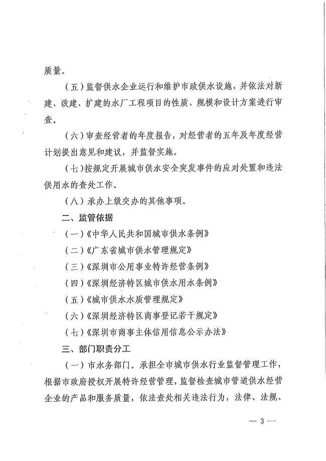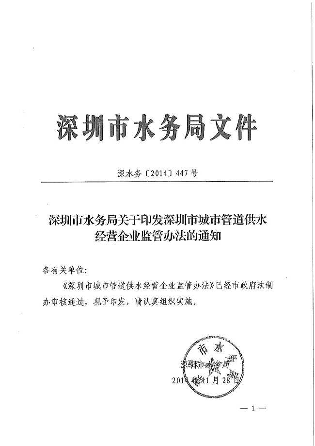 深圳市水务局关于印发深圳市城市管道供水经营企业监管办法的通知