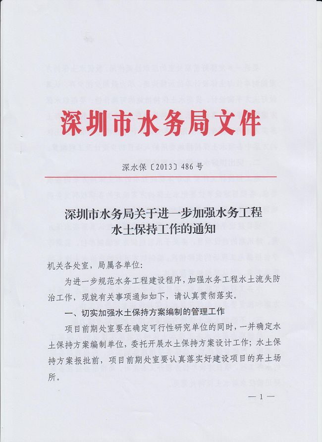 深圳市水务局关于进一步加强水务工程水土保持工作的通知