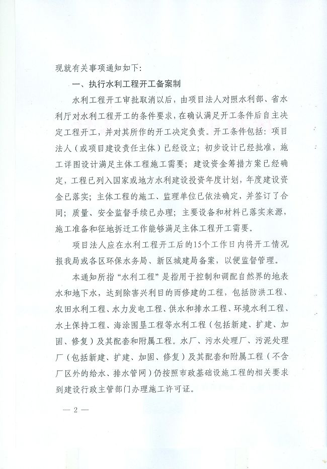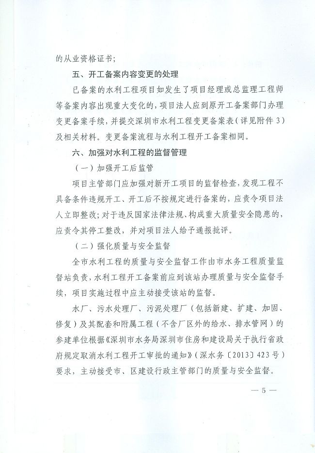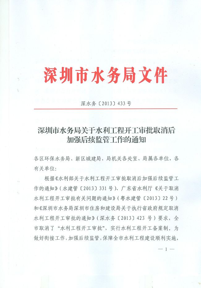 | 名称: | 深圳市水务局关于水利工程开工审批取消后加强后续监管工作的通知 | ||