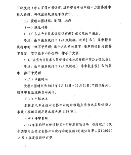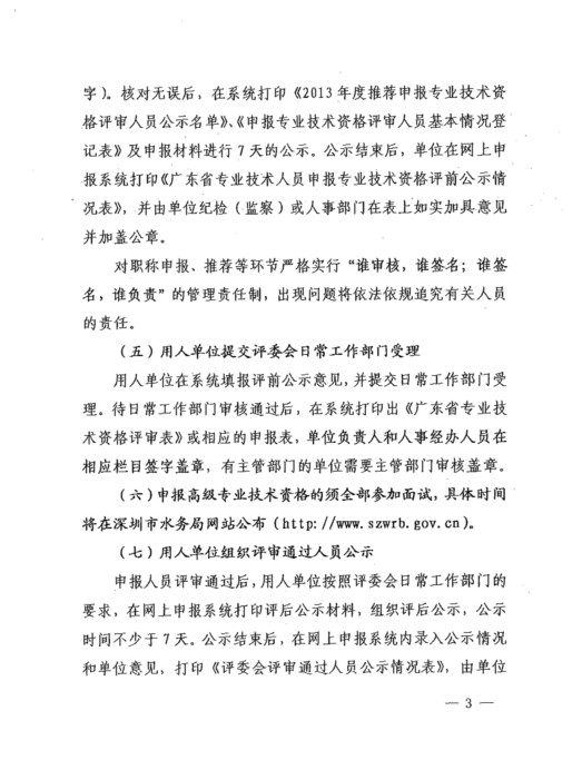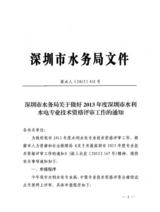 深圳市水务局关于做好2013年度深圳市水利水电专业技术资格评审工作的通知