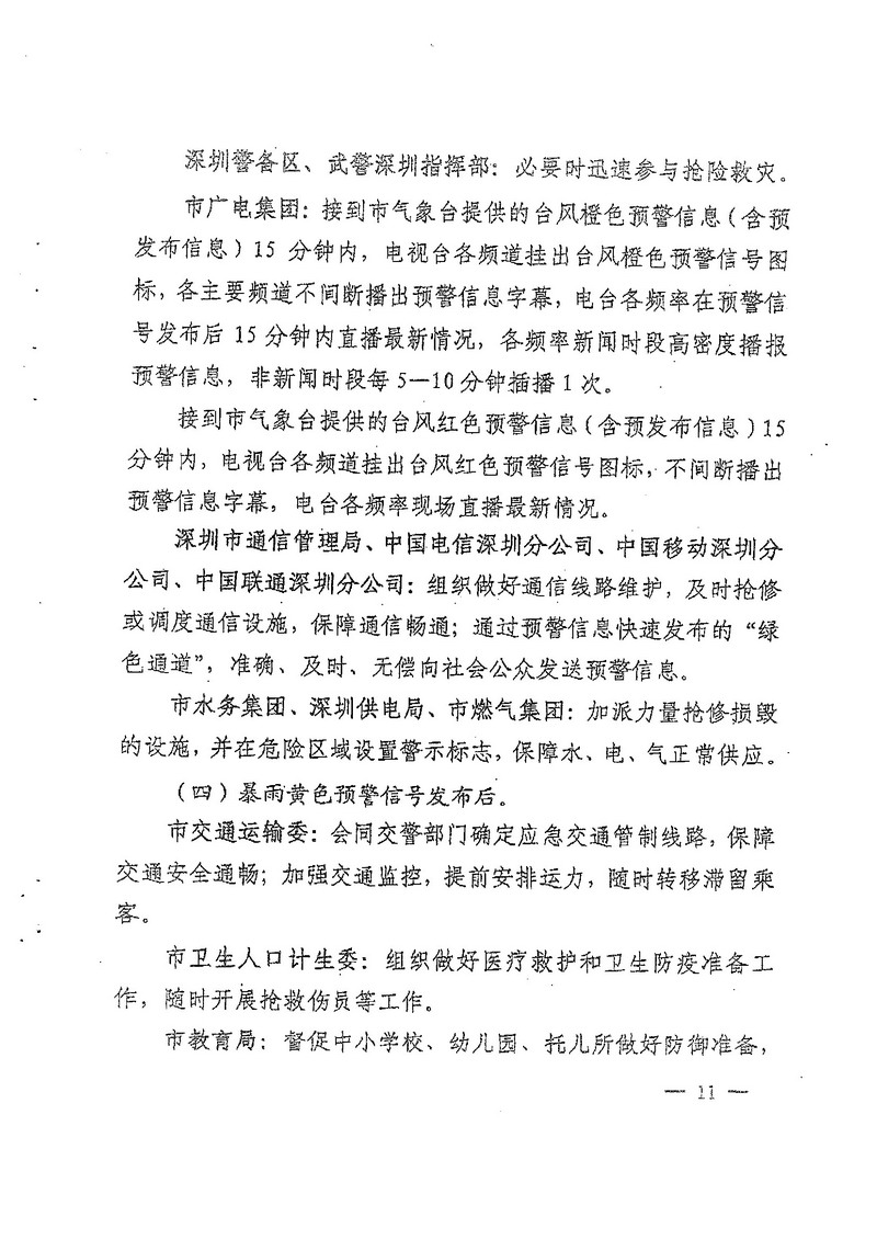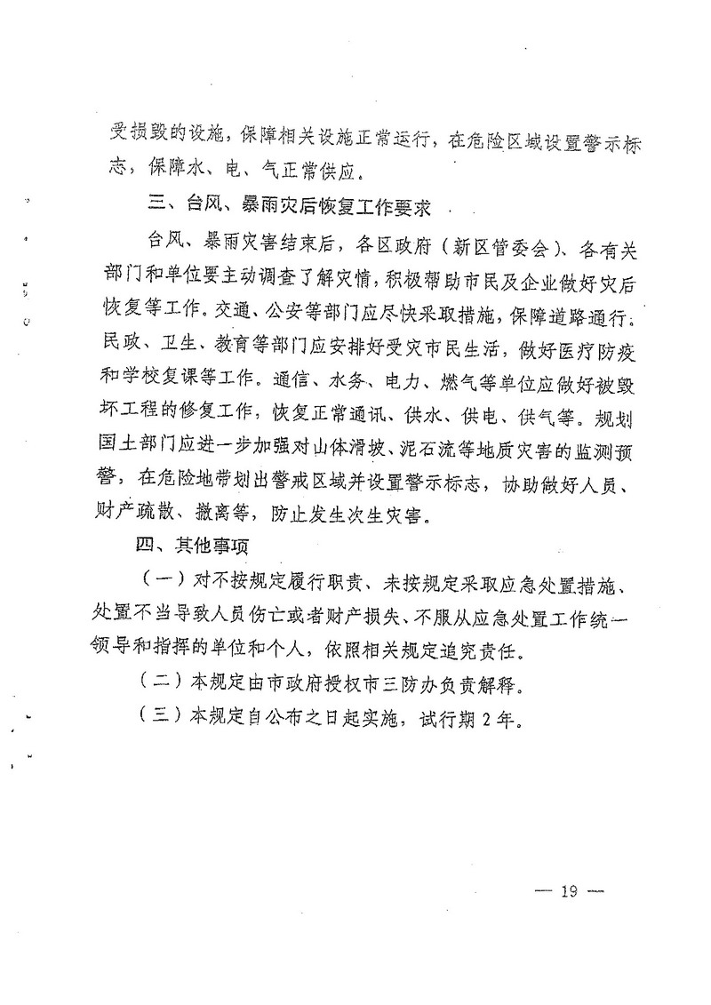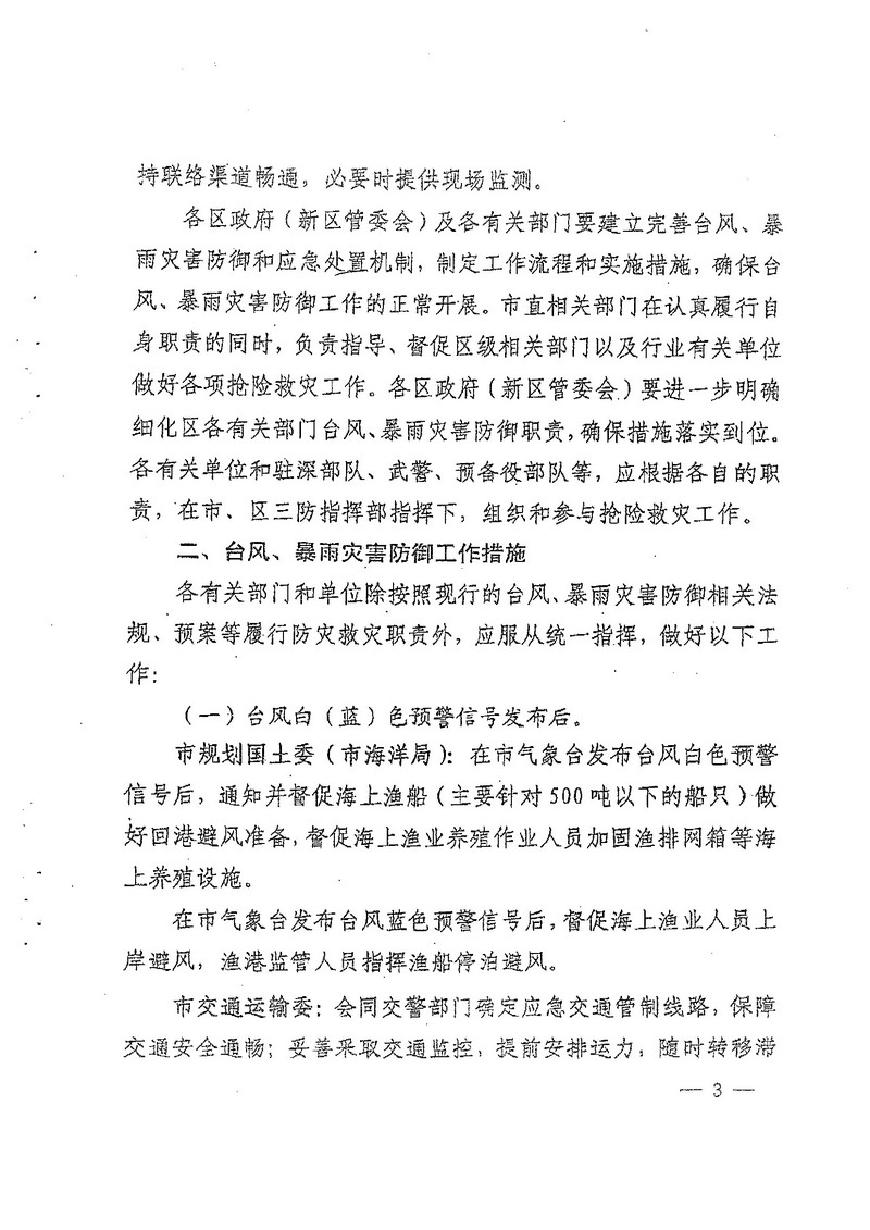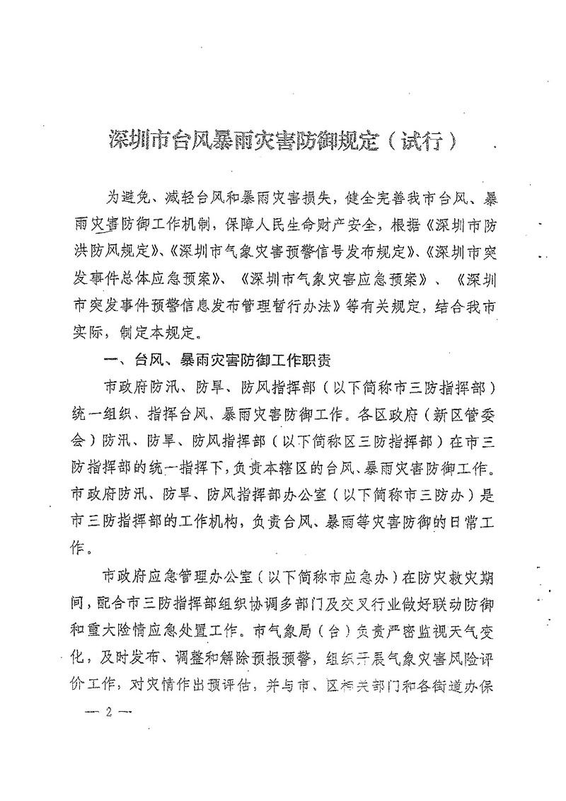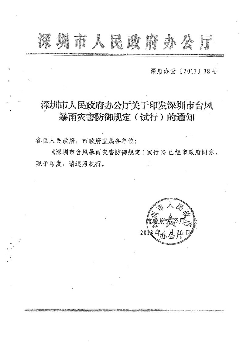 深圳市人民政府办公厅关于印发深圳市台风暴雨灾害防御规定(试行)的通知