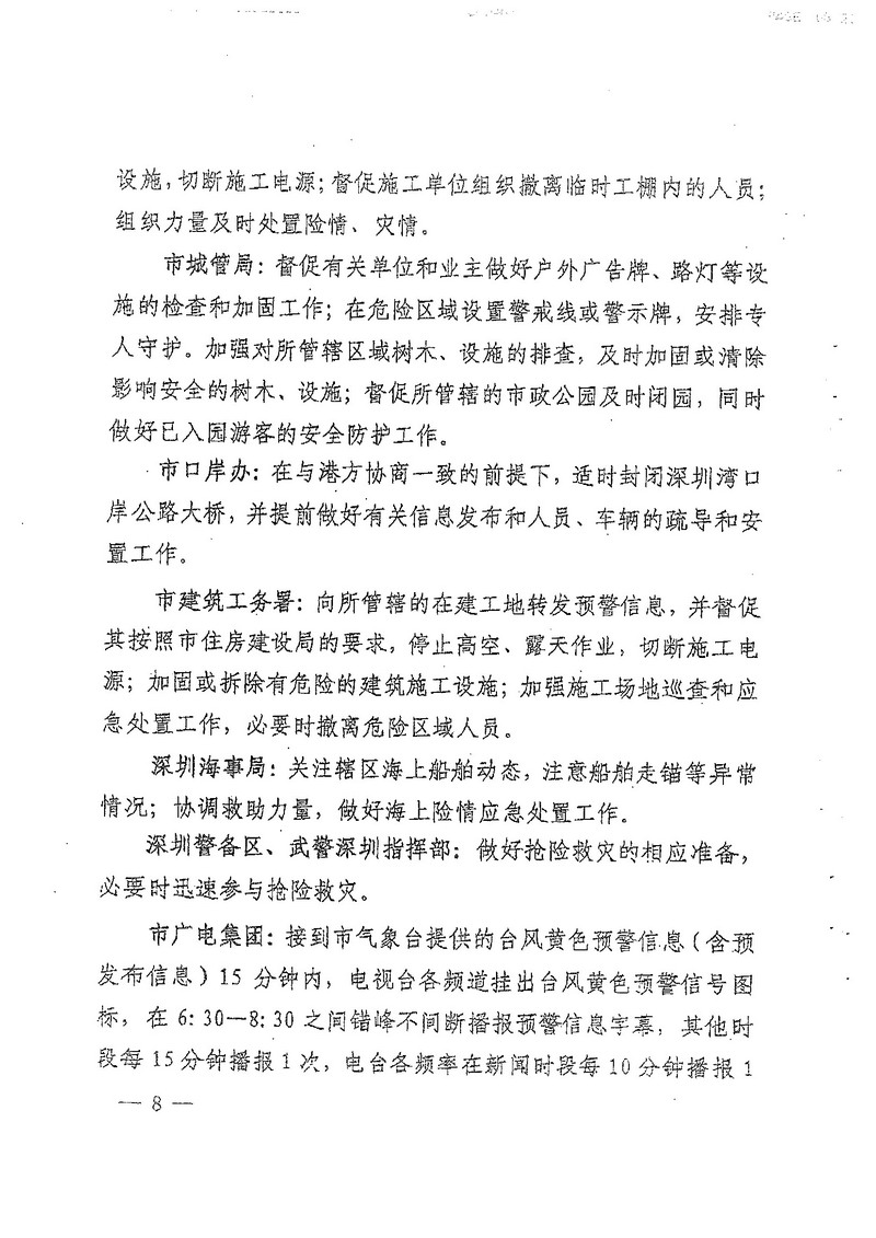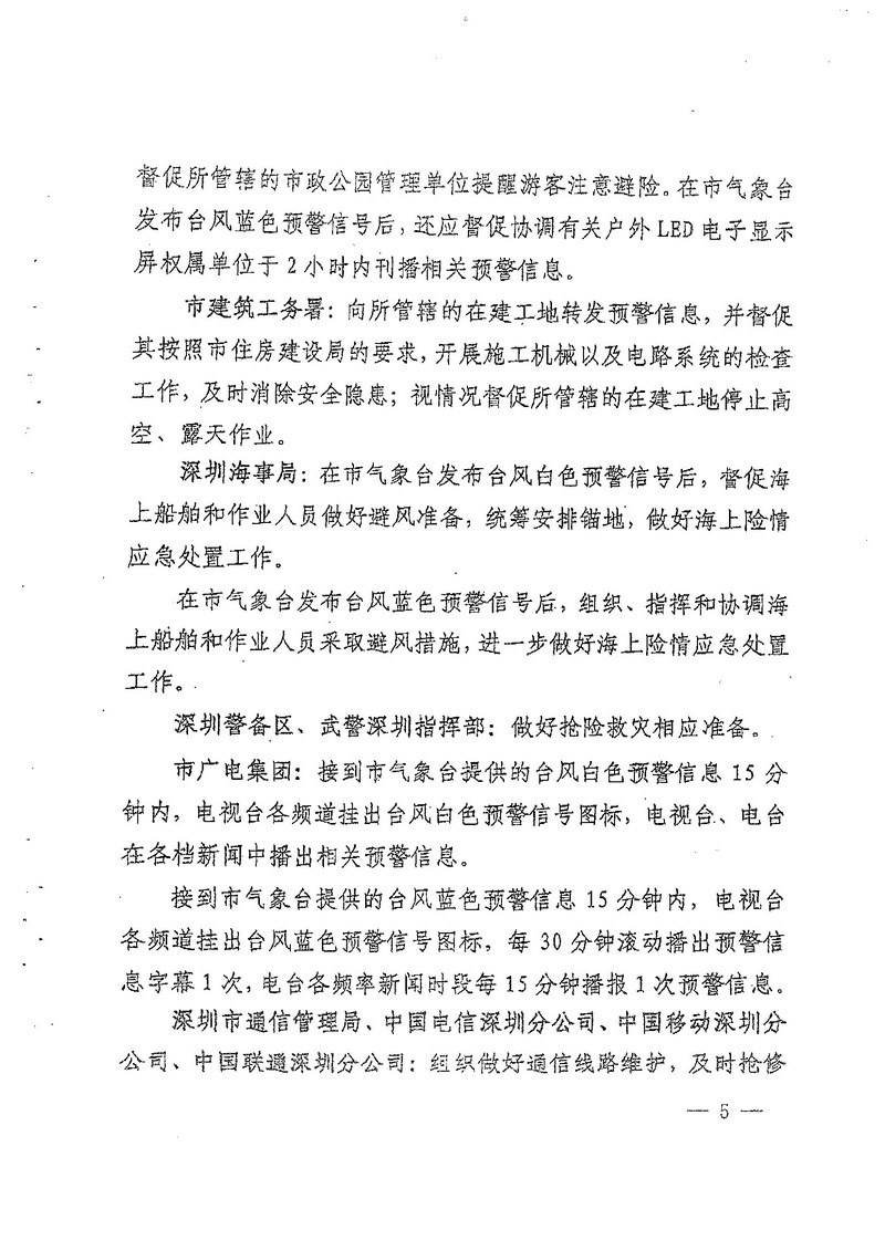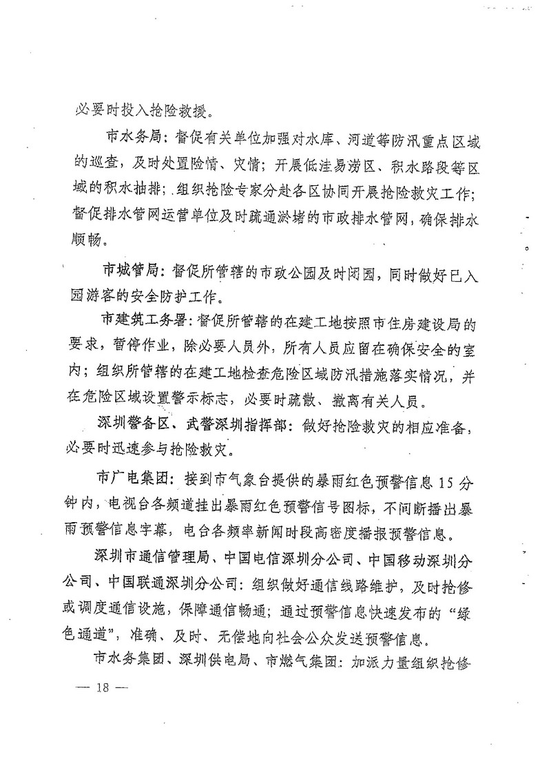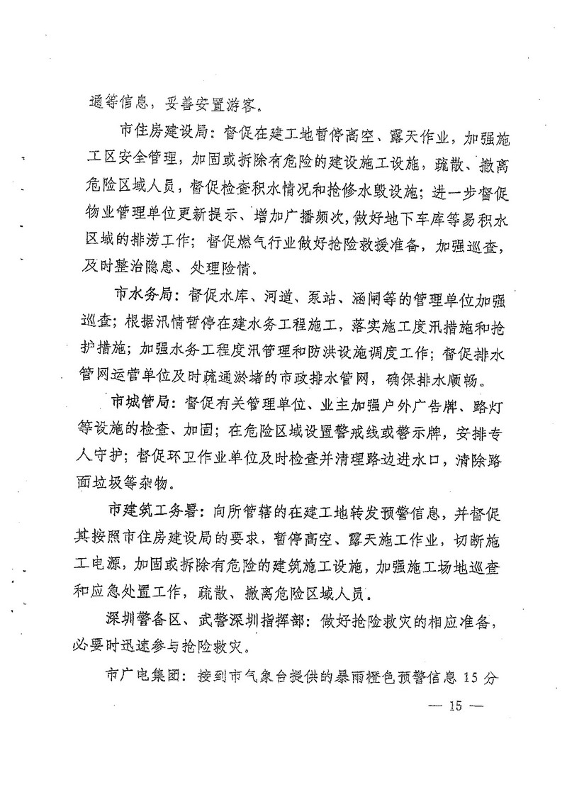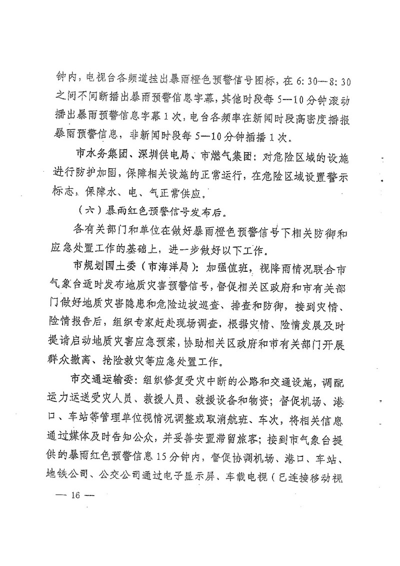 深圳市人民政府办公厅关于印发深圳市台风暴雨灾害防御规定(试行)的通知