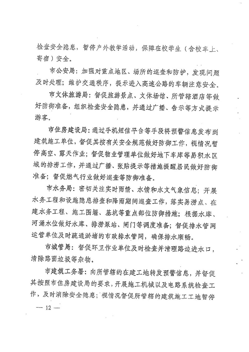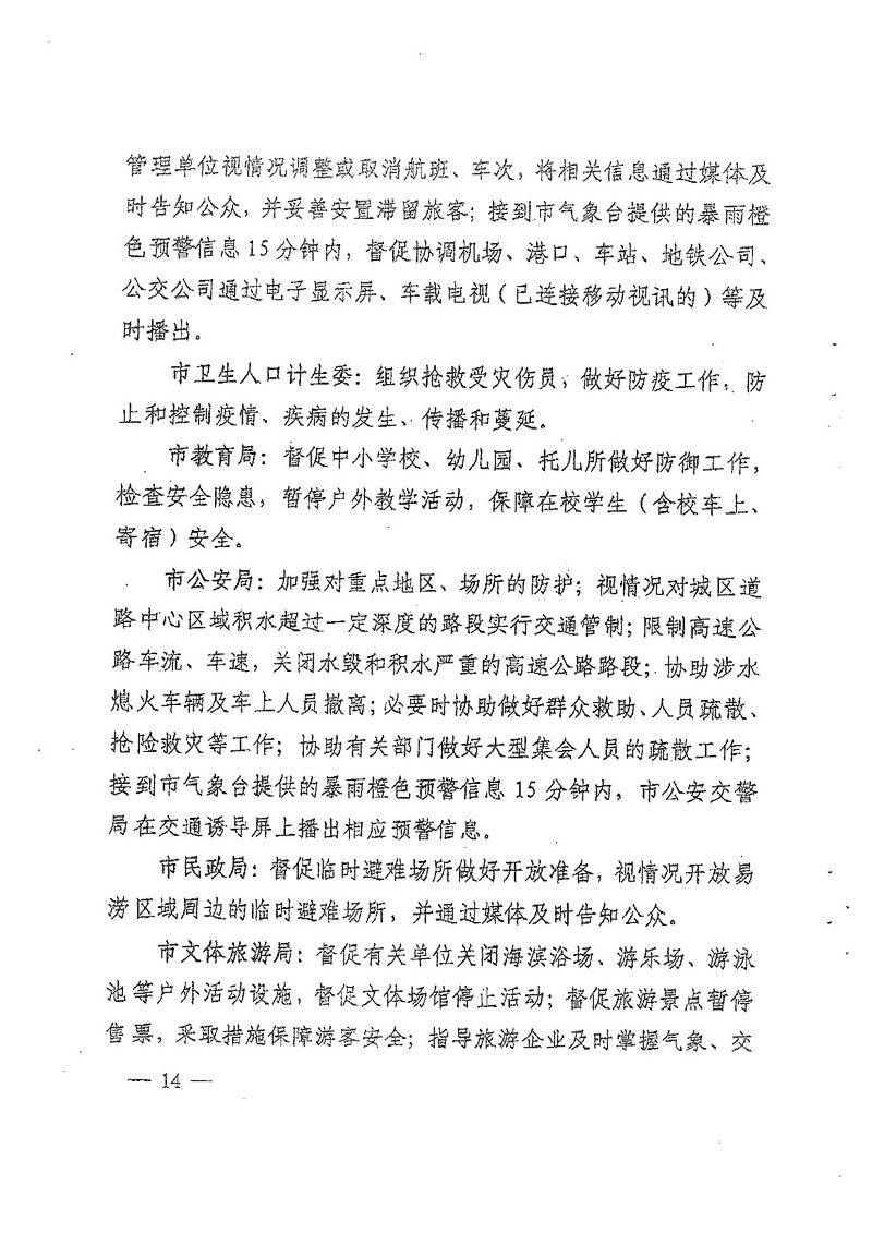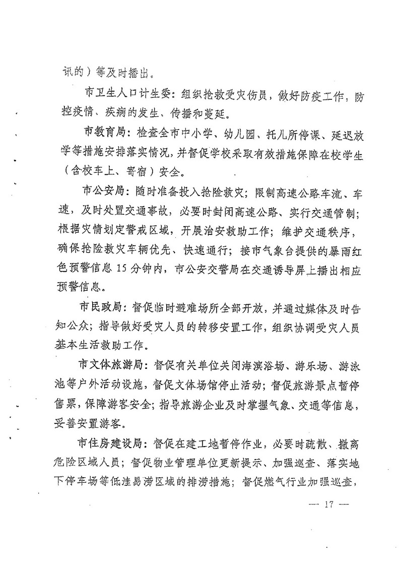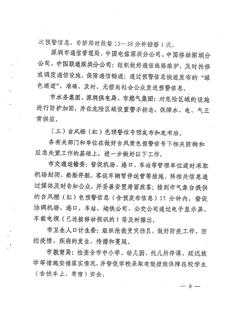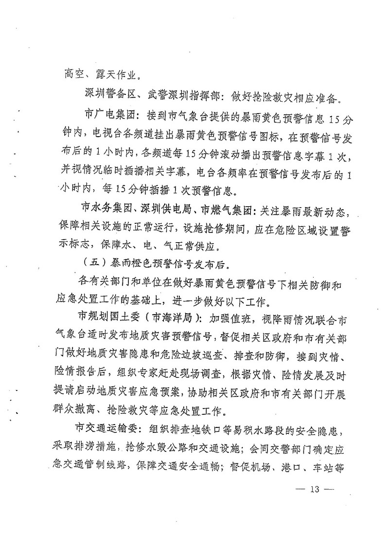 深圳市人民政府办公厅关于印发深圳市台风暴雨灾害防御规定(试行)的通知