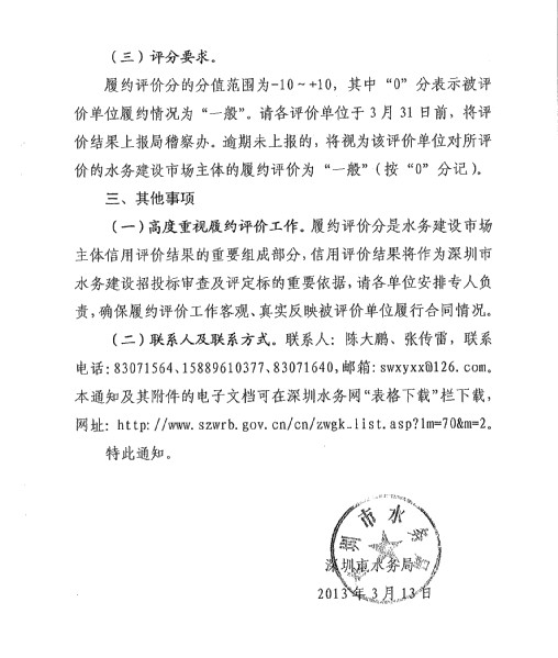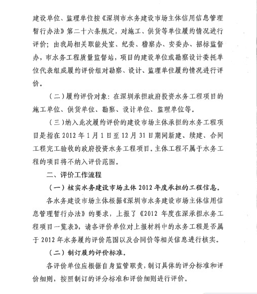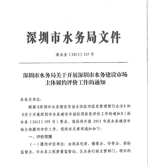深圳市水务局关于开展深圳市水务建设市场主体履约评价工作的通知