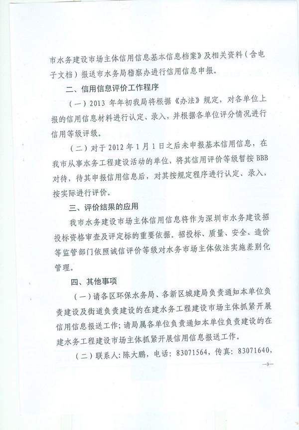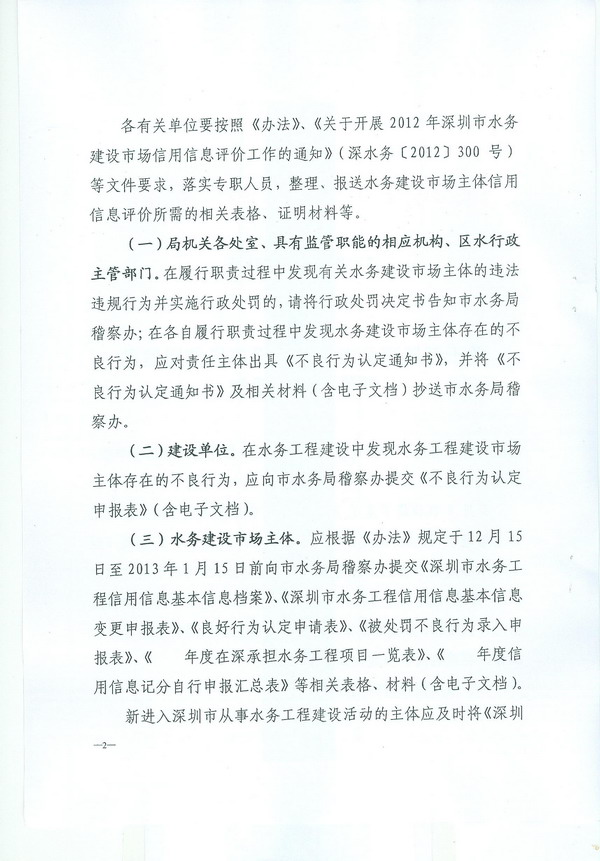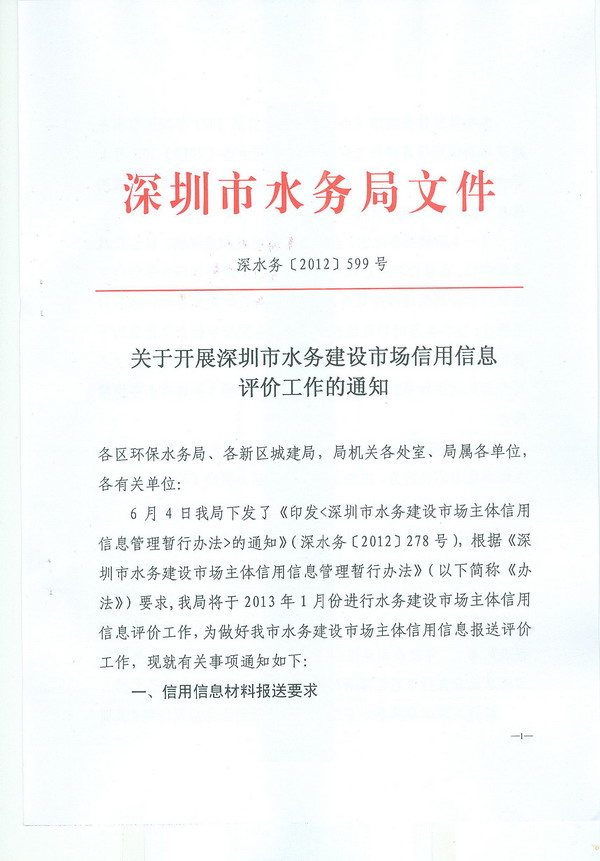 关于开展深圳市水务建设市场信用信息评价工作的通知