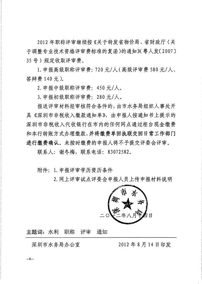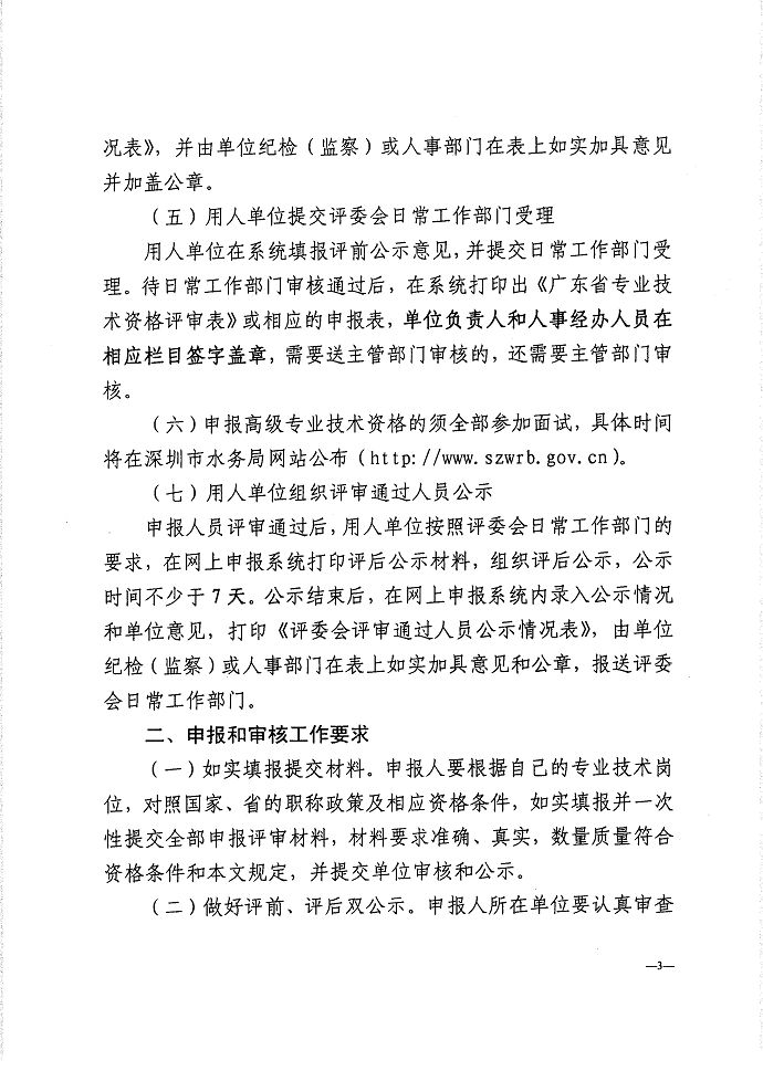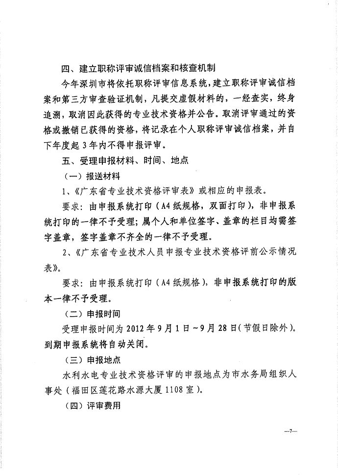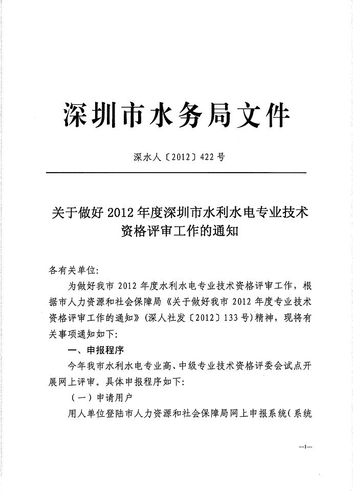 关于做好2012年度深圳市水利水电专业技术资格评审工作的通知