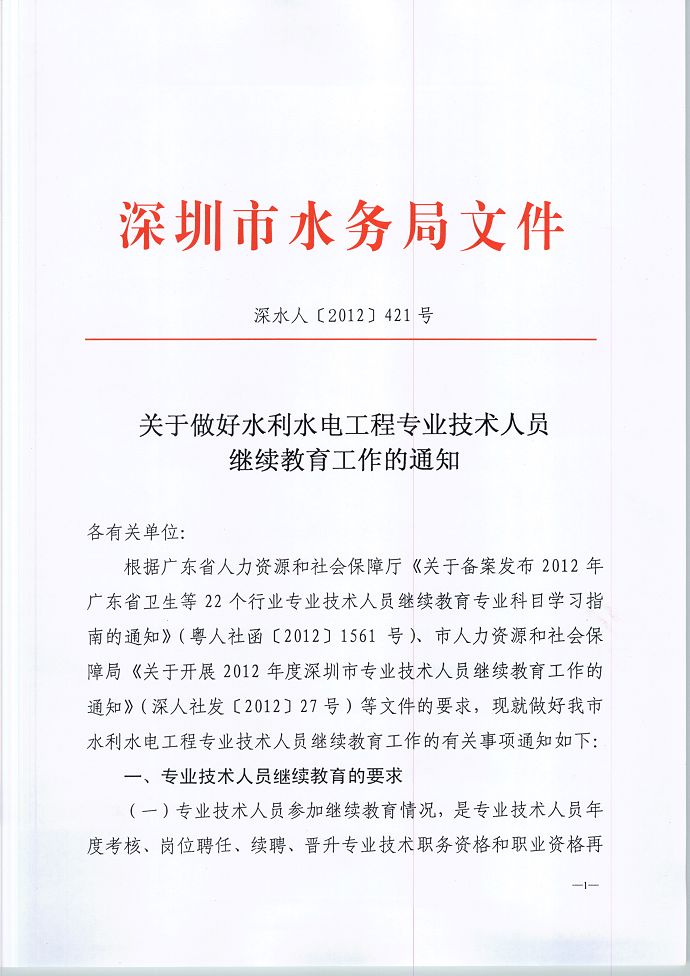 关于做好水利水电工程专业技术人员继续教育工作的通知