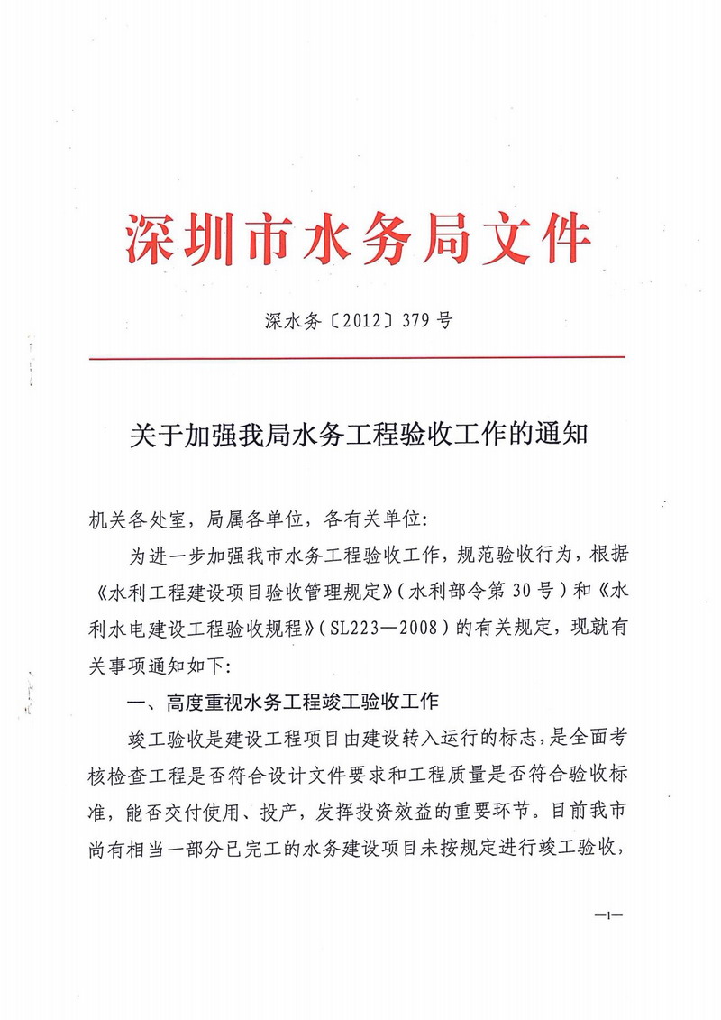 关于加强市水务局水务工程验收工作的通知