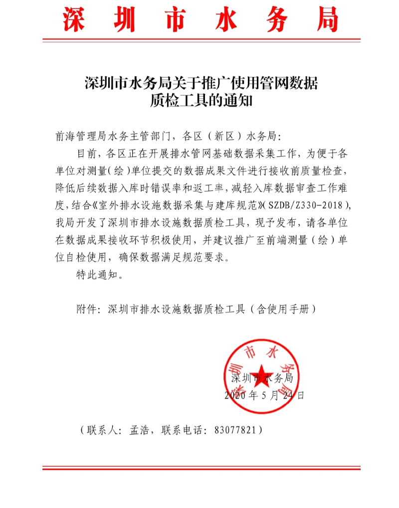 | 名称: | 深圳市水务局关于推广使用排水管网数据质检工具的通知 | ||