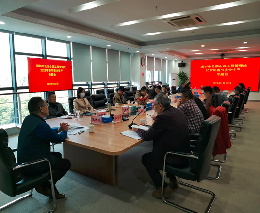 1月20日下午,市北部水源工程管理处(下称“管理处”)在调度中心四楼会议室召开2022年春节安全生产专题会议。管理处领导班子成员、指导协调专员、中层干部及相关成员参加会议。