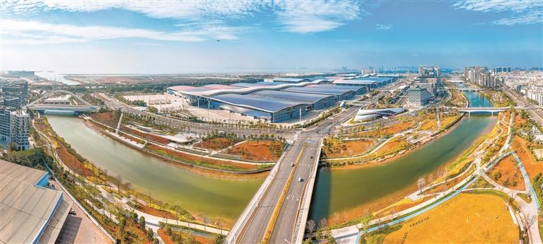 曾经的滩涂鱼塘变身为深圳国际会展城的一片生态绿洲,一头连着美丽生态,一头连起产业发展。毗邻深圳国际会展中心,处在空港新城核心地带的福海河,成为践行以高品质生态环境支撑高质量发展,加快推进人与自然和谐共生的现代化绝佳舞台。