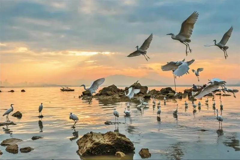 《深圳河入海口处的成群白鹭》 吴国勇 摄